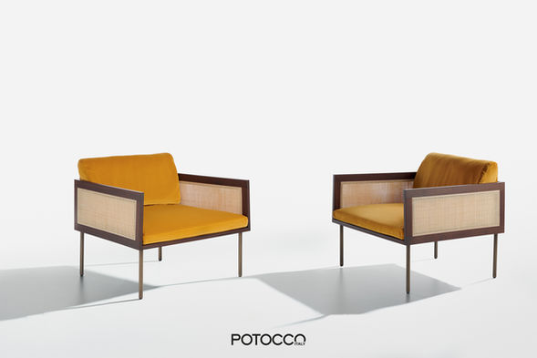 The expertise gained in a century of activity, cutting-edge technological processes, and the pursuit of quality, define the design that distinguishes Potocco. Extremely careful attention to detail, typical of artisan tradition, is manifested in the processing of various materials and in the weave produced by hand in cane and nautical synthetic and raw nautical ropes and ribbons, both raw and synthetic, which contributes to the creation of unique proposals with a taste that is always new and fresh. The company production includes types of products able to live both inside and outside the domestic environment, declined in collections ranging from the living room to the dining room: chairs, armchairs, sofas and chaise longue, stools, tables, coffee tables, cabinets, and consoles are entirely produced in our facility in Manzano, guaranteeing their Made in Italy quality.
